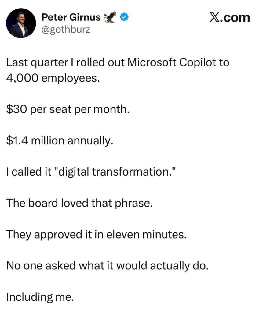 El posteo viral que ironiza sobre los clichés corporativos y sobre cómo no debe adoptarse una nueva tecnología